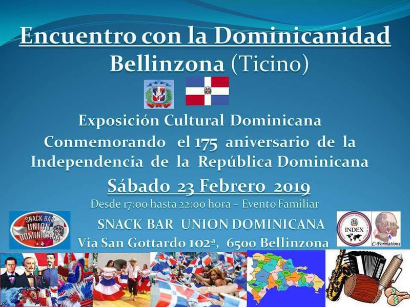 Con motivo del 175 aniversario de la Independencia de la Republica Dominicana (27.Feb.1844 - 27. Feb. 2019), Cornelio Perez (C-Formations) ha realizado una exposicion de articulos, antiguedades, libros y rarezas dominicanas. Esta actividades se han llevado a cabo exitosamente a travez del INDEX (Instituto para Dominicanas y Dominicanos en el Exterior y el Partido Revolucionario Dominicano (PRD) con el interés de reforzar la identidad dominicana en el exterior y tanto para las nuevas generaciones de dominicanos y dominicanas, como para los multinacionales amigos de los dominicanos. https://www.facebook.com/Cornelio.Perez.Suiza