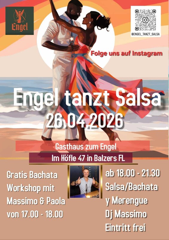 17.00 Uhr - 18.00 Uhr Gratis Bachata Workshop mit Paola und Massimo ab 18.00 Uhr - 21.30 Uhr Salsa/ Bachata y Merengue mit Dj Massimo Eintritt Frei