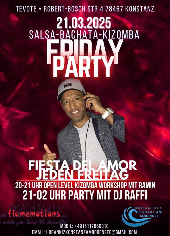 🎉Fiesta del Amor Die leidenschaftliche SBK-Party!🎉 Taucht mit uns ein in eine unvergessliche Nacht voller Salsa, Bachata und Kizomba! Euch erwarten pure Leidenschaft, mitreißende Musik und jede Menge Spaß. 📅 Wann? Jeden Freitag 📍 Wo? Tevote, Robert-Bosch-Str. 4, 78467 Konstanz 🎶 Musik? DJ Raffi sorgt mit den besten Salsa-, Bachata- und Kizomba-Beats für eine unvergessliche Tanznacht. ✨ Ablauf des Abends: 🕗 20:00 – 21:00 Uhr: Kizomba-Workshop (Open Level) mit Ramin & Dimone nur 10 € pro Person 🕘 21:00 – 02:00 Uhr: Party-Time! Feiert mit DJ Raffi und den heißesten Rhythmen 💃🔥Facebook-Event https://www.facebook.com/share/16C1zw9rUS/ Kommt vorbei und tanzt mit uns durch die Nacht – wir freuen uns auf euch! Euer Fiesta del Amor-Team ❤️🎶 https://www.facebook.com/share/16C1zw9rUS/