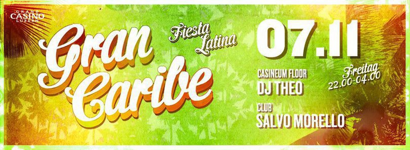 Immer am 1. Freitag des Monats Grand Casino Luzern und I Love Salsa Switzerland Presents: FREITAG 07.11.2014 - Türöffnung 22:00h. ★ Fiesta Latina GRAN CARIBE ★ Die ultimative Latin & Salsa Party in der Zentralschweiz mit 2 Dance Floors, 2 Bars, 2 DJ`s und 5 Stunden "FIESTA" ---- CASINEUM FLOOR 1 ---- DJ THEO (LU) Salsa All Stylles / Bachata / Merengue / Cha Cha Cha ---- THE CLUB FLOOR 2 ---- DJ SALVO MORELLO Latin Urban / Reggaeton / Party Tunes ---- NÄCHSTE DATEN GRAN CARIBE ---- - Freitag 05. Dezember ---- PARKHÄUSER LUZERN ---- Damit Sie uns auch finden... Über 1500 Parkplätze in nächster Nähe! http://www.pls-luzern.ch/index.php?section=home ---- EINTRITT ---- Der Eintritt ist 15.- Sfr. ohne Garderobe " Garderobe ist Obligatorisch " ---- INFOS ---- Der Zutritt ins Casineum ist nur für Personen ab 18 Jahren gestattet. Für den Eintritt ist ein gültiges amtliches Ausweisdokument (Pass, Identitätskarte oder Führerschein) sowie gepflegte Kleidung erforderlich. WICHTIG: Eingang ist beim Haupteingang vom Grand Casino Luzern. CASINEUM & THE CLUB @ GRAND CASINO LUZERN Haldenstrasse 6 ,6006 Luzern / Switzerland www.casineum.ch - www.ilovesalsa.ch Lounge Reservierung: Tel: 076 390 09 54 Viel Spass wünschen euch: Yves & Theo.