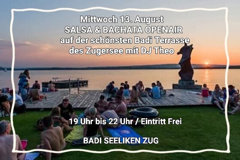 Mittwoch 13. August 2025 ZUGERSEE SALSA & BACHATA OPENAIR MIT DJ THEO 19h. bis 22h. und Freier Eintritt Im Seebistro Seeliken treffen sich Jung und Alt, um gemeinsam unvergessliche Momente zu erleben und die Sorgen des Alltags hinter sich zu lassen. Hier kommt jeder auf seine Kosten. Unser Seebistro ist ein Ort, an dem man sich entspannen, lachen und gemeinsam unvergessliche Erinnerungen schaffen kann. SEEBAD SEELIKEN Artherstrasse 2, 6300 Zug www.seeliken.ch Wir freuen uns darauf, Sie schon bald bei uns begrüßen zu dürfen. AUTO PARKPLATZ: - Parkhaus Casino - Altstadt-Casino - Frauensteinmatt - Parkhaus Postplatz - Parkplatz unterer Postplatz - Parkhaus Athene https://fb.me/e/4Uze0WJMf