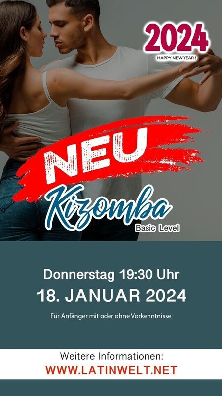 NEU! JANUAR 2024 Do 18.01.2024 - 07.02.2024 | 19:30 - 20:25 Uhr JAN: 18., 25. // FEB: 1., 8., 15., 22., 29 // MÄR: 7. KIZOMBA BASIC Kurs-Nr. 2401-010 // Für Anfänger mit oder ohne Vorkenntnisse 8x 55 Minuten | CHF 200 Max. Teilnehmer: 20 Personen | Kursstart ab 6 Einschreibungen Kursleitung: Segundo Valencia // Ort: Latinwelt Solothurn NOTE: Man kann auch ohne festen Tanzpartner am Kurs teilnehmen. https://www.latinwelt.net/p/kursangebote-ab-august.html
