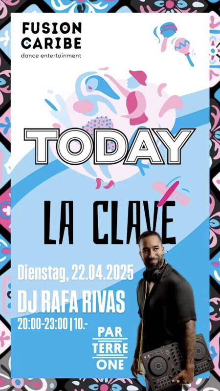 *LA CLAVE* 🔥💃🏽 El Martes Salsero Heisse Rhythmen und lateinamerikanische Lebensfreude erwarten dich im Parterre One. Tanze unter der Woche zu heissen Salsa-Rhtyhmen, etwas Bachata und mehr. Diese Nächte versprechen Leidenschaft und pure Tanzfreude! *PARTERRE ONE* jeden 2. und 4. Dienstag im Monat 20:00 - 23:00 Uhr Dienstag, 22.04.2025 mit DJ RAFA RIVAS Es ist die letzte Indoor Party für diese Season! Danach geht LA CLAVE in die Sommerpause! *Ab Sonntag, 04. Mai geht es los mit LA TERRAZA auf dem Viertel Dach ☀️ Salsa Open Air jeden Sonntag!* 💃🏽 *LA CLAVE* 🏠 *Parterre One Music* | Klybeckstr. 1b (bei Kaserne) | Basel ⏰ 20:00-23:00 Uhr 🎫 10.- CHF Abendkasse LA CLAVE wird präsentiert von #fusioncaribedanceentertainment https://www.fusioncaribe.com/events
