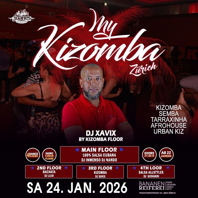 ★ LA NOCHE DE CUBA ★ DJs Inmenso & Nando - Show & Animation Bananenreiferei (4 Floors) SAMSTAG 24. JANUAR 2026 ●●● Cuba kehrt 2026 zurück – mit all der kubanischen Energie! Die Karibikinsel trägt Feuer, Lebensfreude, Fiesta und pure Rumba in ihren Adern und bringt dieses Lebensgefühl nach Zürich. Dank Juanes können wir diese wunderschöne Kultur durch ihre heißen und mitreißenden Rhythmen erleben. Genau deshalb lässt dich LA NOCHE DE CUBA jede Ausgabe so genießen, als wärst du mitten in Havanna. ●●● ★ 4 Dance Floors ★ AB 22 JAHREN ★ DOORS: 21:30 – 04:00 UHR ★ EINTRITT CHF 20.- ★ GRATIS GARDEROBE ★ 400 AUTO PARKPLÄTZE ★ EINTRITT: BEZAHLUNG AN DER KASSE NUR BARGELD ★ GETRÄNKE-BAR: BARGELD & CREDITCARD ●●● VERLOSUNG / SORTEO 3X TICKETS LEONI TORRES KONZERT 28. FEB. 26 AURA CLUB ZÜRICH ●●● WORKSHOP BY ISMARAY ASPISIRNA (Cuba) 20:30 bis 21:30 Uhr . RUMBA CON SALSA . INTERMEDIATE Sie brauchen nicht zu buchen, kommen Sie direkt zum Bananenreiferei am Samstag 24. Januar 2026 um 20:15 Uhr. Der Workshop Preis ist CHF 25.- Inkl. Garderobe & Party auf 4 Dance Floors. ●●● 00:00 UHR SHOW BY ISMARAY ASPIRINA LA RUMBA NO MUERE ●●● DANCE ANIMATION by MIJAIL GALANO (Cuba) ★★★ ★ 1-MAIN FLOOR: * 100% CUBANO ★ DJ INMENSO ★ DJ NANDO 100% Salsa Cubana, Timba – Rumba - Fiesta ●●● ★ 2ND FLOOR: BACHATA: ★ DJ LUJO 100% Bachata Fusion, Moderna, Clasica, del Recuerdo ●●● ★ 3RD FLOOR: KIZOMBA: ★ DJ XAVIX Kizomba - Semba - Tarraxinha - Afrohouse - Urban Kiz ●●● ★4TH FLOOR: SALSA ALLSTYLES ★ DJ IVAN Salsa Allstyles, Puertorriqueña, Clasica, Mambo. ●●● BANANENREIFEREI Pfingstweidstrasse 101 8005 Zürich ●●● DATES 2026 LA NOCHE DE CUBA ● Sa 24. Januar 2026 ● Sa 28. Februar 2026 ● Sa 28. März 2026 ● Sa 25. April 2026 ● Sa 23. Mai 2026 ● Sa 27. Juni 2026 ● Sa 25. Juli 2026 ● Sa 22. August 2026 ● Sa 26. September 2026 ● Sa 24. Oktober 2026 ● Sa 28. November 2026 ● Sa 26. Dezember 2026 ★★★ FOLLOW ME https://www.instagram.com/noche_cubana_juanes/ ★★★ LIKE ME https://www.facebook.com/juanesevents ★★★ Bienvenidos Juanes Events https://juanesevents.ch/