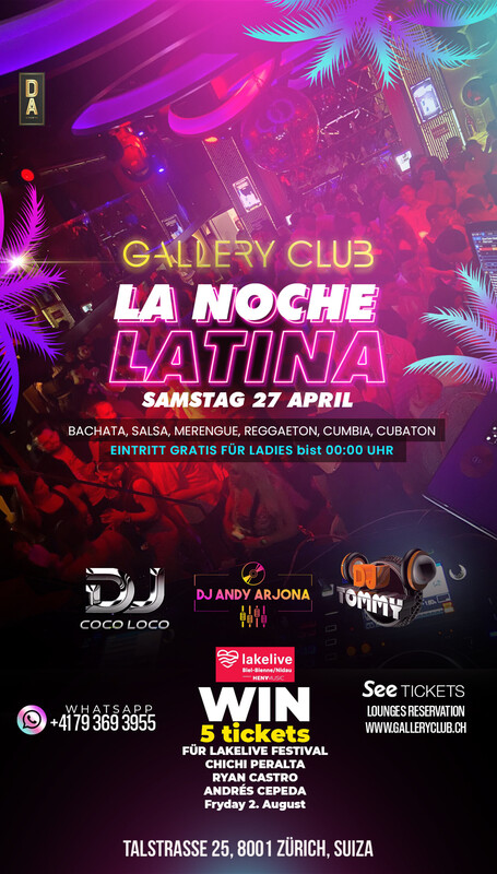 LA NOCHE LATINA 27.04.2024 Te Gusta la Bachata ,Salsa ,Reggaeton💃🕺ven a pasar una NOCHE LATINA | Vamos a Bailar toda la Noche!! LA NOCHE LATINA Weekend 😊 PRIMERA EDICIÓN DJs 100% Latinos 🇨🇴🇨🇱🇪🇨🇩🇴🇺🇾🇨🇺🇧🇷 La mejor Musica Latina toda la noche Bachata ,Salsa, Merengue ,Reggaeton, Cumbia ,Cubaton GALLERY CLUB Talstraße 25, Zúrich, Suiza Lounge & Reservation www.galleryclub.ch Whatsapp + 41 79 369 3955 Te Gustaría estar en el Concierto de ▪️CHICHI PERALTA ▪️RYAN CASTRO ▪️ANDRÉS CEPEDA ▪️CEVICHE MIXTO ▪️LA ORQUESTA LA PUNTUALIDAD ▪️BAZURTO ALL STARD Y muchos Artistas mas te lo vas a perder 👈 Participa y Gana 5 tickets 🎟 🎟para el evento del año LAKELIVE FESTIVAL 2024 BIEL - BIENNE / NIDAU 🇨🇭 Te esperamos en el GALLERY CLUB ZÜRICH Apartir : 23:00 hrs Que no te lo cuenten 😉 Entrada Gratis Chicas hasta las 00:00 hrs Eintritt Gratis Ladies bist 00:00 UHR https://www.seetickets.com/ch/tour/la-noche-latina