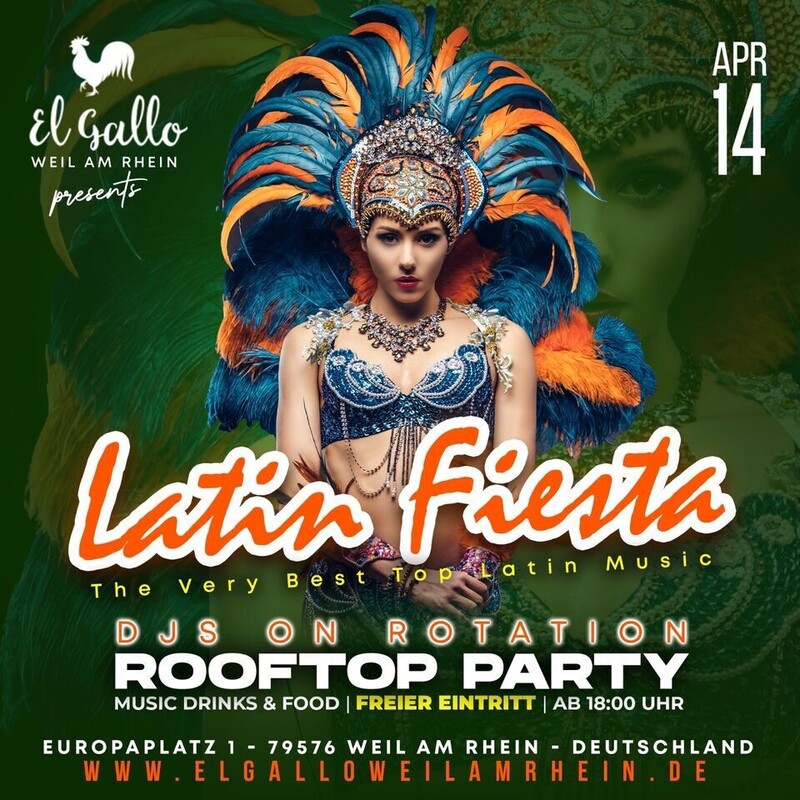 LATIN FIESTA | ROOFTOP PARTY 25°C | SONNTAG 14.04.2023 jeden Sonntag bei schönem Wetter Workshops Ab 18:00 Uhr | Party Ab 19:00Uhr | Freier Eintritt - • Guest DJs • Salsa, Bachata, Latin Mix & Open Format • Drinks, Food & Party - El Gallo Resto Bar Lounge Europaplatz 1 79576 Weil am Rhein Deutschland - • Ab 18:00 Uhr | Bachata Workshop By : ILHAN & KIRA ( 10 CHF | € ) - El Gallo Restaurant Europaplatz 1, 79576 Weil am Rhein, Deutschland https://elgalloweilamrhein.de/ __________________________________ ÖFFENTLICHE VERKEHRSMITTEL Die Anfahrt mit öffentlichen Verkehrsmitteln ist mehr als einfach. Der Bahnhof Weil am Rhein liegt direkt gegenüber des Centers, nur wenige Gehminuten entfernt. Aus Basel erreicht man die Dreiländergalerie mit dem ÖPNV in 15 Minuten, Freiburg im Breisgau, Zürich und Bern liegen ca. 90 min Fahrminuten entfernt. Auch die Station der grenzüberschreitenden Tramlinie 8 liegt nur wenige Gehminuten vom Center entfernt.