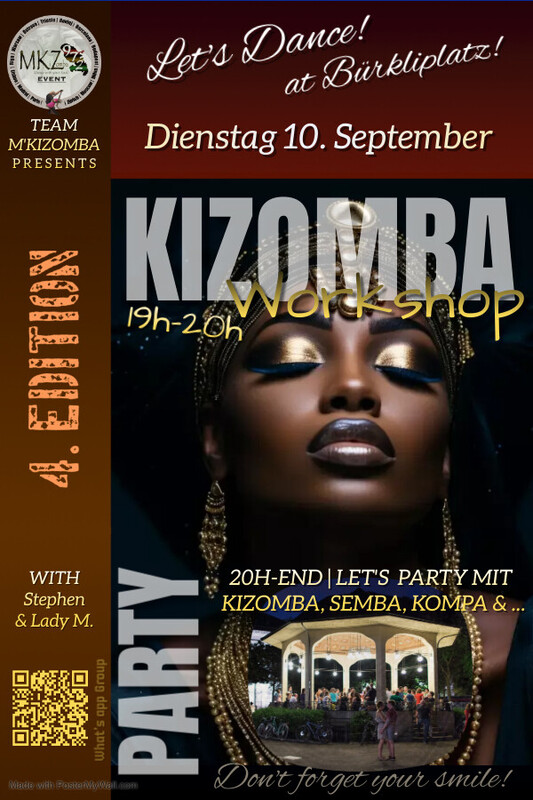 ❤🔥 _Dear dancers_ ❤🔥 As you wish... _Tuesday, 10th September 2024_ After the success of the last Edition in the dark 🫣💃🏼🕺🏾💃 We will have for the 4th Edition a _100% Kizomba for the social & more..._ 💃🏽 *Program*🕺🏽 19:00-19:30 Crash course (no prior knowledge required) _19:30-20:00_ Open-level class ACT. IV (you should know at least the basic steps see before) _20:00-End_ Let's dance ❤️🔥 This Tuesday the classes will be taught by Stephen & Ladie M. 💃🏻🕺🏾 🫂 *Concept* 🫂 The Kizomba classes will helping you to improve your trust in yourself... Let's it go, "lâcher prise" en français... 🫶🏻 *Donations Corner* 🫶🏽 More 🫱🏼🫲🏾💰 = More ❤🔥🔊 📍 *Bürkliplatz:* https://maps.app.goo.gl/gtaBzstacCMzN4bb6 🚽 Public toilet nearby : https://maps.app.goo.gl/P41Mxj7DyJrcecGV6 👠👞🧦 The floor is perfect for all feet, all shoes as you wish 🍺 Bring your own snacks and drinks! 🥪 🚮🫵 if you like this place... don't forget to clean before to leave 🙏🏾 Looking forward to seeing you! 🤗 ❤🔥 Team M'KiZomba 💃🏻🕺🏾💃🏻 Link What's app group: https://chat.whatsapp.com/HsxkUKNIes12w7zsCfPyzv Facebook event: https://facebook.com/events/s/lets-dance-kizomba-burkliplatz/888094759907609/ PS Share with your friends & See u soon 🥳 🙏🏿 _THANK YOU_ 🙏🏿 https://facebook.com/events/s/lets-dance-kizomba-burkliplatz/888094759907609/