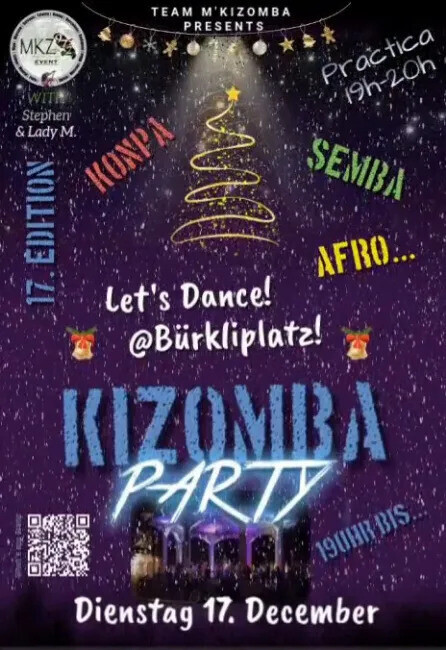 ❤🔥 Dear dancers ❤🔥 As you wish... ... and for the last of the year Tuesday, 17th December 2024 We will have the 17th Edition 100% Kizomba for the social & more. 💃🏽 Program🕺🏽 19:00 - 20:00 "Practica" — Combines the idea of practice with a social dance: improve & enjoy. 19:00 - open end "Social Dance" 🫂 New Concept 🫂 Practica = Music will play all the time; you can just dance, or ask us for tips on how to improve your dancing. 🎼 Hosted by Stephen & Lady M. 💃🏻🕺🏾 🫶🏻 Donations Corner 🫶🏽 Thanks for your support 🫱🏼🫲🏾💰 🙏🏾 📍 Bürkliplatz: https://maps.app.goo.gl/gtaBzstacCMzN4bb6 🚽 Public toilet nearby: https://maps.app.goo.gl/P41Mxj7DyJrcecGV6 👠👞🧦 The floor is perfect for all feet & all shoes. 🧃🍺 Bring snacks and drinks to share 🥪🥨 🚮🫵 If you like this place: don't forget to clean before leaving 🙏🏻🙏🏽🙏🏿 😃 Looking forward to seeing you 🤗 ❤🔥 Team M'KiZomba 💃🏻🕺🏾 What's App Group: https://chat.whatsapp.com/HsxkUKNIes12w7zsCfPyzv 🕺Facebook event:💃🏼 https://fb.me/e/2NgDQTzcu 🫶🏻🫶🏽🫶🏿 Join us & bring friends 💃🏻🕺🏾 🥳 Thank You❣️
