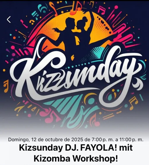 Hoi Zämme, Salut lé Zanmis, Ladies & Gentlemen, Are you ready? Next Sunday 12th October 💃🏻🕺🏾 Because we love KizSunday! Let's Dance ones a month on this Beautiful place ... 🫂❤🔥 New Program : Workshop & Party ⏰ Program 🫂 7pm-8pm : Special Workshop with figure Stephen & Nikki ... Please contact US by PM To register (076 725 77 79) 8pm-11pm : Let's Dance ... on Kizomba & more... Music by DJ Fayola! Participation 💸 Workshop only : CHF 20,- Workshop + Party : CHF 30,- Party only - Eintritt : CHF 15,- https://fb.me/e/3Iesv9jZo Let's join and catch us on the dancefloor🫂 💃🏻🕺🏿💃🏼🕺 📍Club el Social im Viadukt 10 ❤️🔥 Team KizSunday ❤🔥 https://chat.whatsapp.com/HsxkUKNIes12w7zsCfPyzv