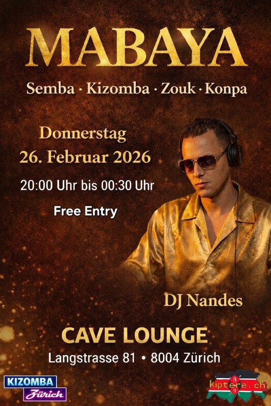 Freu dich auf eine stilvolle Nacht voller Gefühl, Connection und bester Vibes im Cave Lounge. 💃🕺 🎧 DJ Nandes 🎶 Semba • Kizomba • Zouk • Kompa 🟡 Kizomba Crash-Kurs mit Magda 🕖 19:15 Uhr – 20:00 Uhr 👣 “Absolute beginners” 💰 CHF 15.– ✅ Ohne Voranmeldung ✅ Auch ohne Begleitung möglich 📅 Donnerstag, 26. Februar 2026 🕗 20:00h – 00:30h 📍 Cave Lounge Langstrasse 81 8004 Zürich ✅ Free Entry ✨ Tanzen & Gutes tun Mit der Spendenbox vor Ort unterstützen wir ein kenianisches Dorf und die Kinder durch das Projekt kiptere.ch. Ein Teil der Einnahmen fliesst direkt in dieses Projekt. Der restliche Beitrag hilft, die Eventkosten zu decken und solche Community-Events ohne Eintritt überhaupt möglich zu machen. 👉 Spenden sind möglich: • direkt vor Ort in die Box • bequem per TWINT (Scan vor Ort) Wer kiptere direkt und unabhängig unterstützen möchte, findet alle Infos hier: 🌍 www.kiptere.ch Kommt vorbei, tanzt mit uns und setzt gemeinsam ein Zeichen. ❤️ #Mabaya #SocialDanceZurich #KizombaZurich #Semba #Zouk #Kompa #DanceForACause #kiptere https://www.facebook.com/events/1597376431595081