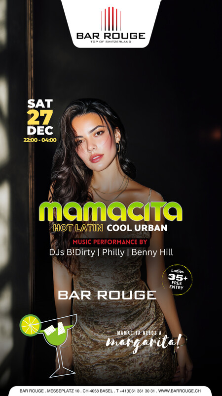 Mach dich bereit für die heisseste Nacht des Jahres! Komm und schwinge mit uns die Hüften zu den heissesten Latin Sounds der City. Wir wissen ganz genau wie heissblütig unsere Partygäste sind, weswegen es zur Abkühlung coolen Urban Sound & die besten Cocktails hoch über den Dächern von Basel gibt. Music: HOT LATIN & COOL URBAN https://eventfrog.ch/Mamacita27122025