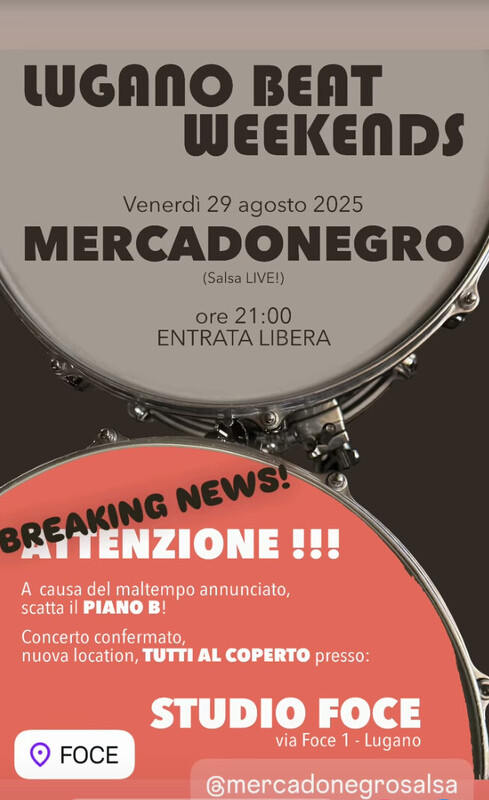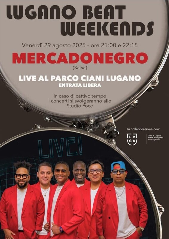 Concerto di salsa dell'orchestra Mercadonegro al Lugano Beat Weekends Humberto Amesquita, trombone Armando Miranda, voce Rodrigo Rodriguez Timbal, voce José Leyva, tastiere Dimitris Christopoulos, basso Edwin Sanz, percussioni & voce https://m4.ti.ch/decs/dcsu/osservatorio/agenda-culturale/home/dettaglio/103389/mercadonegro