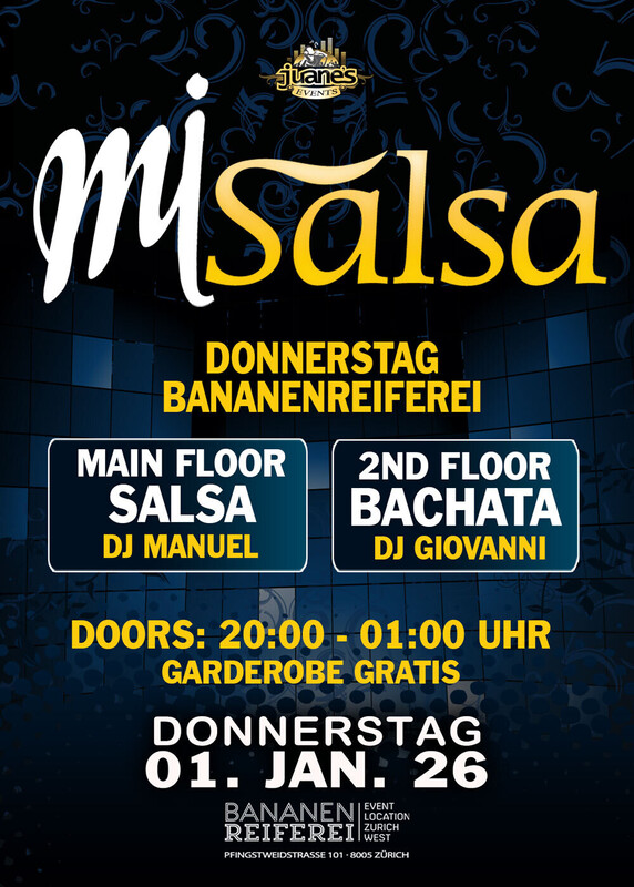 WEGEN EINER PRIVATVERANSTALTUNG IM VIOR CLUB FINDET MI SALSA AM DONNERSTAG, DEM 01. JANUAR 2026 IN DER BANANENREIFEREI STATT. •••• POR UN EVENTO PRIVADO EN VIOR CLUB, EL JUEVES 01. DE ENERO 2026 ► MI SALSA ◄ SE REALIZARA EN BANANENREIFEREI •••• ► MI SALSA ◄ 2 Dance Floors BANANENREIFEREI • DONNERSTAG 01. JANUAR 2026 •••• ► MAIN FLOOR: SALSA ALLSTYLES • DJ MANUEL • Salsa Allstyles - Cubana - Clasica - Puertorriqueña •••• ► 2ND FLOOR: BACHATA • DJ GIOVANNI • Bachata Moderna, Fusion, Clasica y del Recuerdo. •••• Gutschein im Wert von CHF 5.- für Dich für die Party am Samstag 03. Januar 2026 bei LA NOCHE DE CUBA der AURA CLUB Zürich •••• • 300 AUTO PARKPLÄTZE • Doors: 20:00 bis 01:00 Uhr • Garderobe Gratis • Eintritt Party CHF 10.- Inkl. Garderobe **** * EINTRITT: BEZAHLUNG AN DER KASSE NUR BARGELD. •••• BANANENREIFEREI Pfingstweidstrasse 101 8005 Zürich **** Bienvenidos Mi Salsa by Juanes Events. https://juanesevents.ch/2-0-Events.html