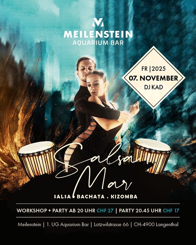 💃 Salsa Mar 💃Mit DJ KAD & SALSA Workshop Hallo Liebe Tanz Freunde ES GIBT GUTE NEUIKEITEN Der Meilenstein wurde Verkauft und der neue Besitzer möchte das wir unser. 💃 Salsa Mar 💃WEITERFüHREN Das wussten wir nicht!! wir sind alle voll begeistert und machen das sehr gerne!! Danke Jff Music 4 Salsa Cubana & Puerto 50/50 3 Bachata 2 Kizomba Die Bar im 1.UG ist das Glanzstück des Aquariums Langenthal. Süsswasserbecken auf 42 Metern Länge verzaubern die Gäste von der ersten Sekunde an. Unterwasserwelten vom Amazonas bis nach Siebirien mit atemberaubenden Flussmonstern und farbengewaltigen Amazonasfischen können hier trockenen Fusses bestaunt werden. Freuen Sie sich bei. 💃Salsa Mar💃 Auf einen Workshop für Tanzbegeisterte ab 20.00-20.45 und anschliessend 20.45 auf eine heisse Party In beeindruckender Kulisse bis 02.00 Workshop & Party. 27.- 20.00-02.00 /Party 17.- 20.45-02.00 💃Salsa Workshop 💃 Mit Stephan Brunner & Tanzpartnerin' Freundlich erwarte ich Dich auf eine weitere Unvergessliche Party Lg Reto & Team https://www.facebook.com/profile.php?id=61559987065837