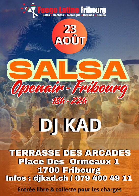 ★OPENAIR SALSA I★I Terrasse des Arcades Fribourg★ Pour profiter de ce temps estival, FUEGO LATINO FRIBOURG, vous invite à une belle soirée Salsa sur la Terrasse des Arcades, lieu splendide du Bourg avec une vue magnifique sur la vieille ville et la cathédrale de Fribourg. SAMEDI 23 AOÛT 2025 - PARTY 18H - 22H Aux platines : Dj KAD Entrée Libre & collecte pour les charges Adresse: Terrasse des Arcades, Place Ormeaux 1, 1700 Fribourg. Contacte: djkad.ch / 079 400 49 11 www.djkad.ch