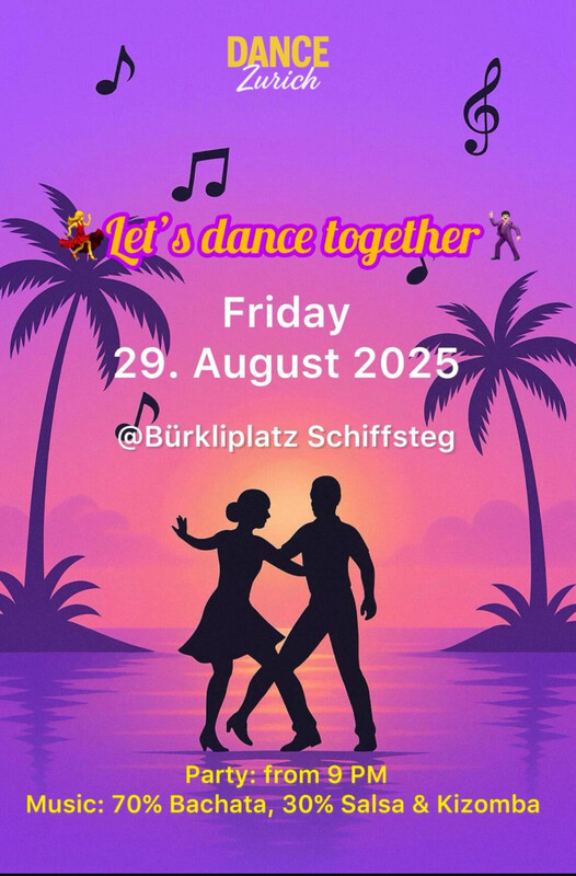 💃Hi Dancers🕺🏻 As no other party is taking place @Schiffsteg today and there should be no rain, we decided spontaneously to provide an option to dance outdoors tonight 🎶🤗 🥳☀️ We look forward to having a good time🎶💃🕺🏻 ******************************** Party from 9:00PM We play 70% Bachata, 30% Salsa & Kizomba 🎶🤗