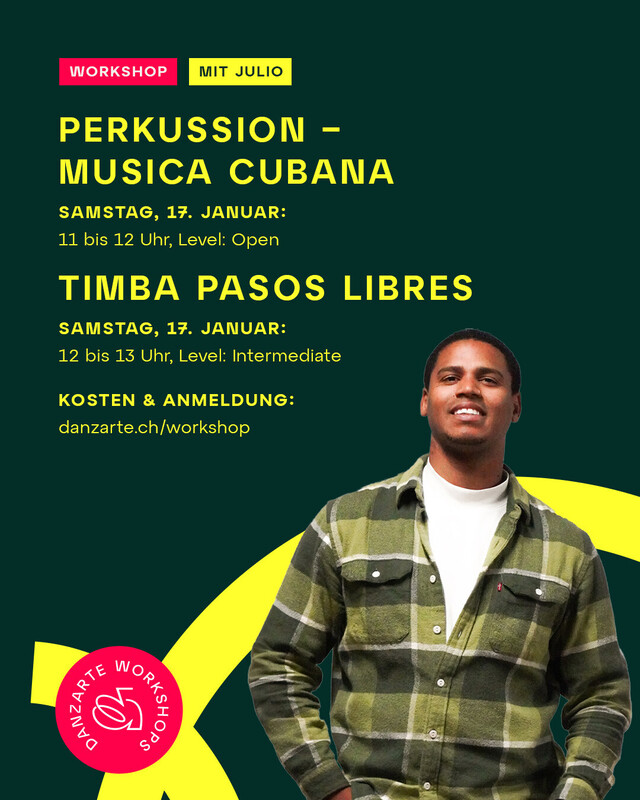 Tauche ein in die rhythmische und tänzerische Vielfalt Kubas! Am 17. Januar 2026 hast du die Möglichkeit, zwei spannende Workshops zu besuchen – einzeln oder im Fullpass. 11:00–12:00 Uhr – Perkussion – Musica Cubana Niveau: Alle Preis: CHF 30.– Erlebe die kraftvollen Rhythmen der kubanischen Perkussion, lerne die Grundrhythmen und ihre Zusammenhänge kennen und fühle die Musik mit jedem Schlag. 12:00–13:00 Uhr – Timba Pasos Libres Niveau: Intermediate Preis: CHF 30.– Bewege dich frei zur lebendigen Timba-Musik, entdecke rhythmische Variationen und erweitere dein tänzerisches Ausdrucksrepertoire. Fullpass: Beide Workshops für CHF 55.– Komm vorbei, lass dich von Musik und Bewegung mitreissen und erlebe kubanische Kultur hautnah! https://danzarte.ch/salsa-workshops-in-bern/