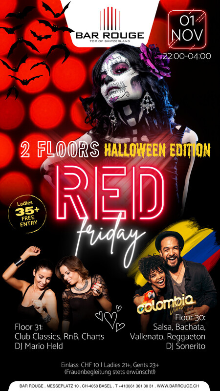Flirten, feiern, Cocktails geniessen und im Lichtermeer der Nacht versinken. Auf dem unteren Floor bringen wir mit Colombia Vibes das kolumbianische Flair nach Basel! Music: _Floor 30: Salsa, Bachata, Vallenato, Reggaeton _Floor 31: Club Classics, RnB, Charts https://www.barrouge.ch/de/events/ColombiaVibes01112024/