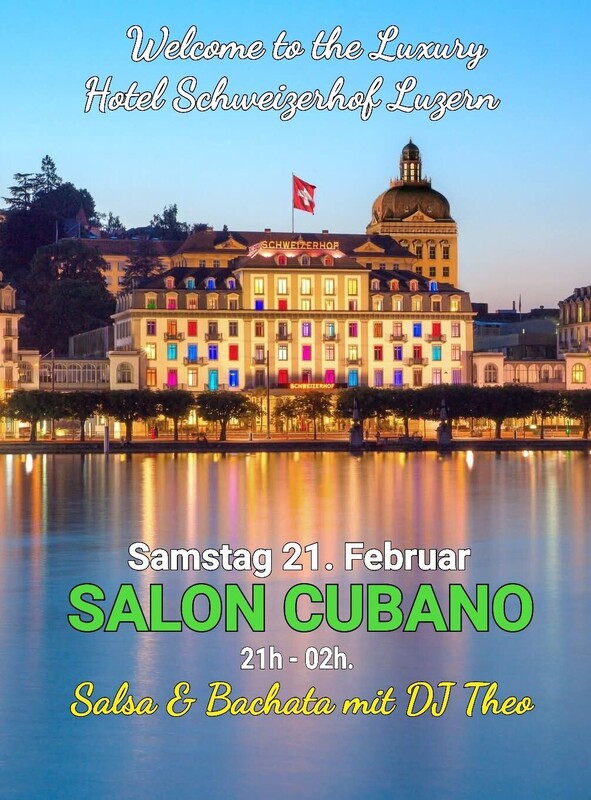 ★ SAMSTAG 21. FEBRUAR 2026 ★ Welcome to The Luxury 5 Star Hotel Schweizerhof in Lucerne ★ SALON CUBANO ★ Der Legendäre SALSA & BACHATA Event in der luxuriösen und exklusiven Räumen des luxuriösen Schweizerhof Hotels. ★ 21:00h. Türöffnung ★ 21:00h. PARTY mit DJ Theo ★ 02:00h. Ende ★ EINTRITT: CHF 15.- Party ab 21h. (NUR BARZAHLUNG) Salsa All Styles & Bachata All Styles mit DJ Theo --------------------------------------------------------- ★ BRINGOLFSAAL > Salsa & Bachata Floor mit DJ THEO 1887 erbaut vom «Hofarchitekten» Arnold Bringolf-Hauser, eignet sich der prächtige Bringolfsaal für verschiedenste Veranstaltungen. Der Saal liegt Tür an Tür mit unserer Brasserie VICO sowie mit dem Zeugheersaal, Wintergarten und Goldroom. Dank dieser Kombination sind Festessen, Grossbankette und verschiedenste Veranstaltungen mit bis zu 800 Personen möglich. Im Bringolfsaal alleine finden 220 Leute Platz. Grösse: 216 m2 ------------------------------------------------------------------ DAS 5 STERNE HOTEL SCHWEIZERHOF LUZERN liegt direkt am Vierwaldstättersee und in unmittelbarer Nähe zum Stadtzentrum von Luzern. ------------------------------------------------------------------ Viele Parkplätze Möglichkeiten in der Nähe: www.parking-luzern.ch HOTEL SCHWEIZERHOF LUZERN Schweizerhofquai 3, 6002 Luzern www.schweizerhof-luzern.ch FACEBOOK: https://fb.me/e/7qmSYVJtL