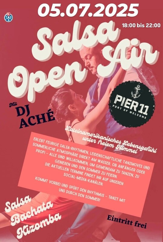 Wir laden Sie zum Tanzen und Genießen bekannter Rhythmen ein. Salsa . Bachata . Kizomba . Dj Ashé Wir werden auf dem Sand und am Fluss tanzen. Wir freuen uns auf Euch. https://www.facebook.com/pavelmichell