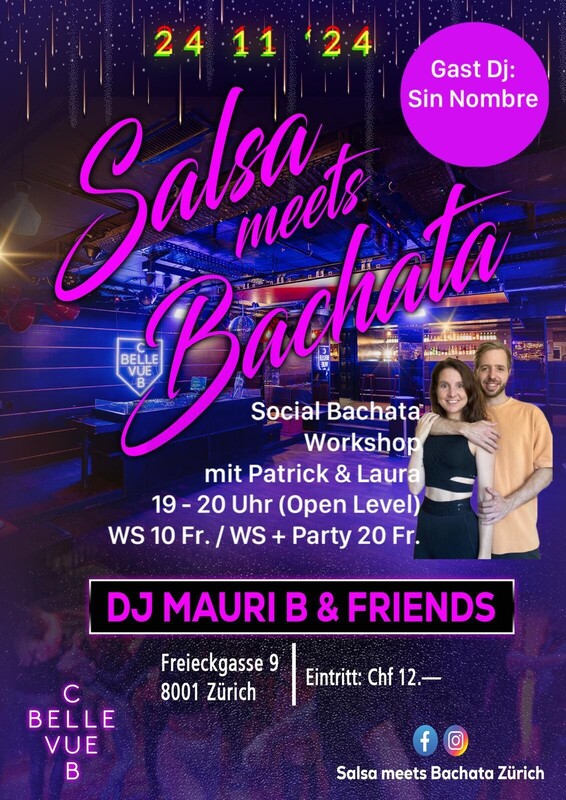 „Salsa meets Bachata“ Es wird heiss wenn diese zwei Rhythmen aufeinander treffen. Ein Abend vollgepackt mit dem besten, angesagtesten Sound dieser zwei Stile - da kann niemand mehr ruhig sitzen bleiben. Salsa und Bachata - all styles Bachata Workshop mit Patrick & Laura Start: 19 Uhr ( Open Level) Preis: CHF10 Party: Start: 20 Uhr Preis: CHF12 Dj Mauri & Dj Sin Nombre fb & insta: Salsa meets Bachata Zürich https://www.facebook.com/profile.php?id=100057608822669