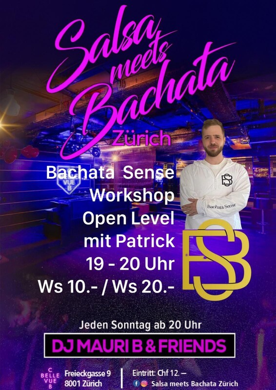 Salsa meets Bachata - Zürich Es wird heiss wenn diese zwei Rhythmen aufeinander treffen. Ein Abend vollgepackt mit dem besten, angesagtesten Sound dieser zwei Stile - da kann niemand mehr ruhig sitzen. Ganz nach dem Motto: BEST MUSIC, ONLY KILLER, NO FILLER ! Salsa und Bachata - all styles Ws 10.- / Ws + Party 20.- Start Workshop: 19 Uhr Start Party: 20 Uhr Dj Mauri B fb & insta: Salsa meets Bachata Zürich Zahlungsmittel: Bar / Kreditkarten / Twint