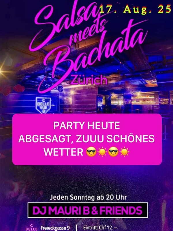 Salsa meets Bachata Zürich Salsa meets Bachata - Zürich Es wird heiss wenn diese zwei Rhythmen aufeinander treffen. Ein Abend vollgepackt mit dem besten, angesagtesten Sound dieser zwei Stile - da kann niemand mehr ruhig sitzen. Ganz nach dem Motto: BEST MUSIC, ONLY KILLER, NO FILLER ! Salsa und Bachata - all styles Bachata Open Level Ws 10.- / Ws + Party 20.- Start Workshop: 19 Uhr Start Party: 20 Uhr Dj Mauri B fb & insta: Salsa meets Bachata Zürich Zahlungsmittel: Bar / Kreditkarten / Twint