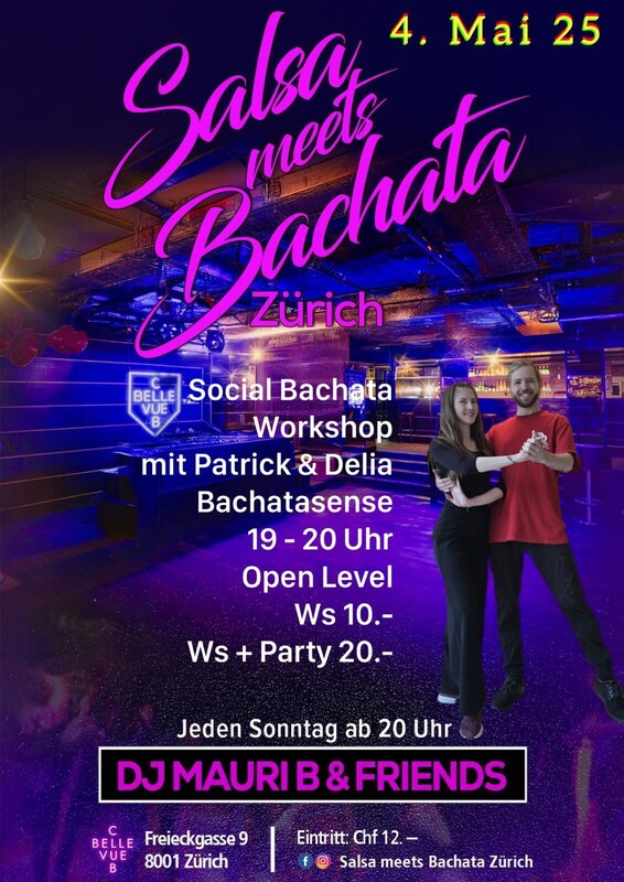Salsa meets Bachata - Zürich Es wird heiss wenn diese zwei Rhythmen aufeinander treffen. Ein Abend vollgepackt mit dem besten, angesagtesten Sound dieser zwei Stile - da kann niemand mehr ruhig sitzen. Ganz nach dem Motto: BEST MUSIC, ONLY KILLER, NO FILLER ! Salsa und Bachata - all styles Social Bachata Open Level mit Patrick & Delia Bachatasense Ws 10.- / Ws + Party 20.- Start Workshop: 19 Uhr Start Party: 20 Uhr Dj Mauri B fb & insta: Salsa meets Bachata Zürich Zahlungsmittel: Bar / Kreditkarten / Twint