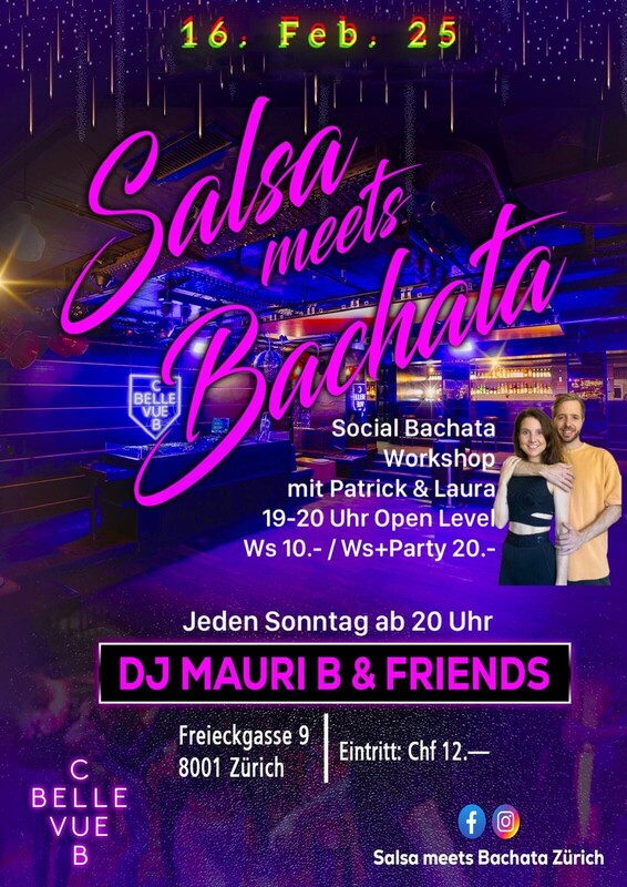 Salsa meets Bachata - Zürich Es wird heiss wenn diese zwei Rhythmen aufeinander treffen. Ein Abend vollgepackt mit dem besten, angesagtesten Sound dieser zwei Stile - da kann niemand mehr ruhig sitzen. Ganz nach dem Motto: BEST MUSIC, ONLY KILLER, NO FILLER ! Salsa und Bachata - all styles Start Workshop: 19 Uhr / Social Bachata Workshop mit Patrick & Laura Start Party: 20 Uhr Dj Mauri B & friends fb & insta: Salsa meets Bachata Zürich