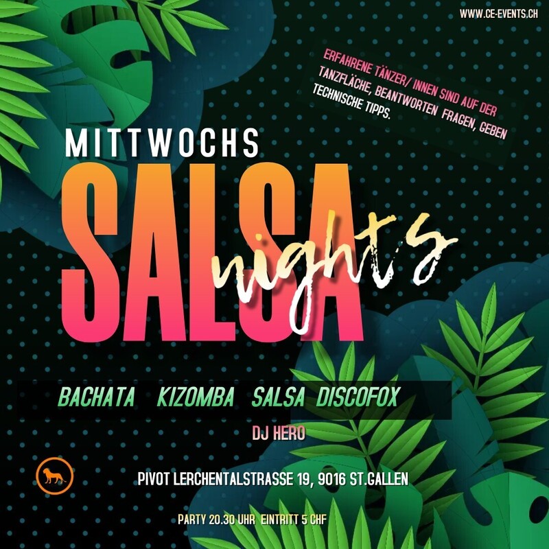 Lasst uns abtanzen und das Leben feiern Mittwochs mit DJ in Rotation in St.Gallen im Pivot 🙂 Eintritt Fr. 5.00 Für weiter Auskünfte: Phone 078 209 93 31 oder per Mail an info@ce-events.ch Wir freuen uns auf einen schönen Abend mit Euch! https://ce-events.ch