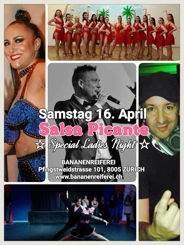 SAMSTAG 16. APRIL 2016, ab 21:30 Uhr SALSA PICANTE - Special Ladies Night SHOWS: - ELENA RODRIGUEZ (Ladies Style Solo Show) ZH - WANNADANCE PRO TEAM Tanzschule ZH & LU - SALSA PEOPLE Tanzschule Ladies-Style Show ZH www.salsapeople.ch MODERATOR - BASTIAN REISER Tanzschule Salsabrosa AG Musik & Support: DJ THEO Salsa All Style - Salsa Cubana - Salsa Puerto -Guaguanco - Cha Cha - Bachata - Kizomba Eintritt 15.- BANANENREIFEREI EVENT LOCATION (SalsaRica) Pfingsweidstrasse 101, 8005 Zürich-West www.bananenreiferei.ch
