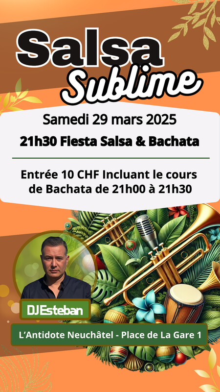 Salsa Sublime à l'Antidote – Neuchâtel – 29 Mars 2025 à 21h30 – Salsa & Bachata – DJ Esteban & Friends !