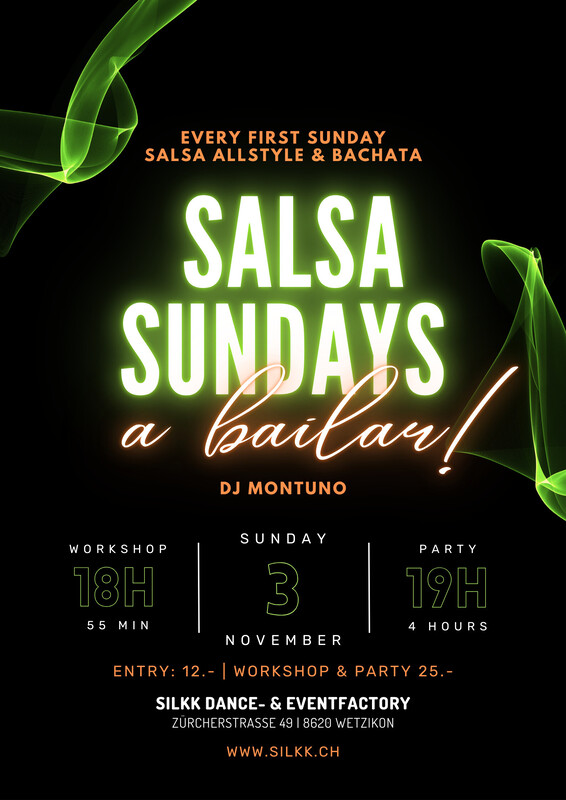 SALSA SUNDAYS – a bailar! Wir treffen uns immer am ersten Sonntag im Monat um gemeinsam einen Energie gelandenen Abend zu verbingen. Als Warm Up findet wie gewohnt ein Workshop statt und danach ist Social Dance mit feinstem Salsa und Bachata von DJ Montuno und weiteren bekannten nationalen DJ's angesagt. Wir freuen uns euch zu begrüssen. CU SOON! ________________________________________________________________ PREIS Eintritt: 12.- Workshop: 20.- Party und Workshop zusammen: 25.- PROGRAMM Workshop Time: 18:00 - 18:55 Social Dancing: 19:00 - 23:00 (Einlass 18:00 nur für Workshopteilnehmer. Partygäste ab 19:00 ❤) WORKSHOP INFOS Art: Salsa Partnerwork Intermed Beschreibung: Level Up you Salsa Flow Teacher: Francesco & Mirjam von sodastudio.ch MUSIC Salsa Allstyle und Bachata mit DJ MONTUNO DATEN 2024 1. Dezember Weniger anzeigen https://www.facebook.com/events/1554309925483725/?acontext=%7B%22event_action_history%22%3A[%7B%22extra_data%22%3A%22%22%2C%22mechanism%22%3A%22unknown%22%2C%22surface%22%3A%22user_timeline%22%7D%2C%7B%22extra_data%22%3A%22%22%2C%22mechanism%22%3A%22surface%22%2C%22surface%22%3A%22profile_browser%22%7D%2C%7B%22extra_data%22%3A%22%22%2C%22mechanism%22%3A%22surface%22%2C%22surface%22%3A%22duplicate_dialog%22%7D]%2C%22ref_notif_type%22%3Anull%7D&onload_action=open_invite_flow&show_created_event_toast=true