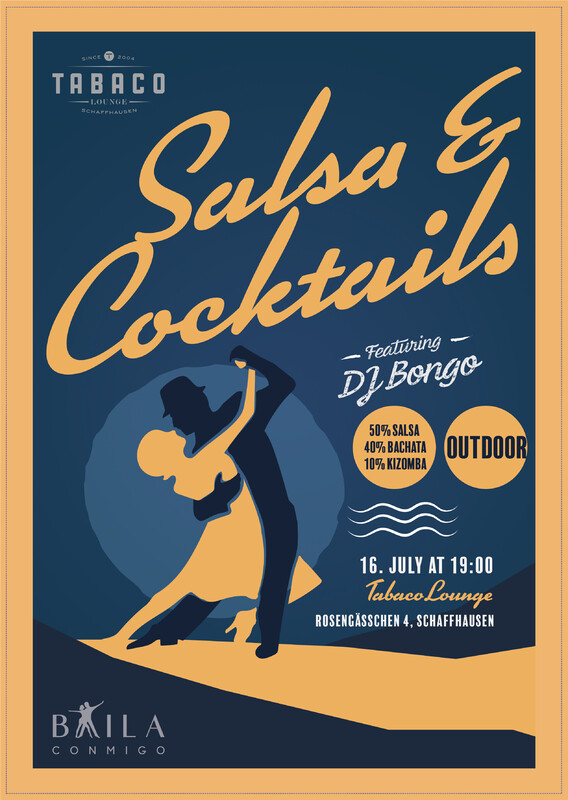 Salsa tanzen und nebenbei ein Cocktail nippen? Etwas schöneres in der warmen Abendsonne könnte man sich kaum vorstellen. Mit 50% Salsa, 40% Bachata und 10% Kizomba, wird DJ-Bongo für die richtige Stimmung sorgen. Am 16.07.2022 ab 19.00 Uhr lassen wir die Party steigen. Kommt doch vorbei und genießt die Stimmung im Tabaco Lounge (Rosengässchen 4, 8200 Schaffhausen)! Freier Eintritt! Wir freuen uns auf euch! https://tabacolounge.com/