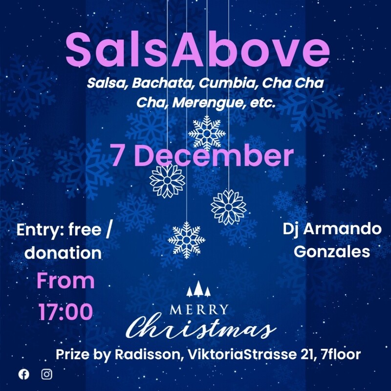 SalsAbove: the Latin american Party on the rooftop of Bern! Join us for an evening of Latin American music and dance on the rooftop of Bern! Our DJ and teacher Armando Gonzales will keep you dancing all night long with the best rhythms of salsa, bachata, Cha-Cha-Cha, merengue, and cumbia. Details: - Date: Sunday, 7th December 2025; - Time: 17:00 - 22:00 ; - Location: PrizeHotel Viktoriastrasse 21, 7 floor Bern, 5 minutes by bus (nr 10, stop: Schönburg) from Bern station; - Safe parking available for 6 CHF all evening ( or blue line's parking around the location); - The party will be held indoors with a big terrasse for smoking and enjoying the view; - Free entry / Donation; Contacts: For more information, contact us on Instagram or write to SalsAbove@gmail.com Don't miss the chance to dance with us in this exclusive location! Best regards, Andrea from SalsAbove Ps Periodically we organize new parties in other super locations, for example in the "SalsAbove Last Minute" we'll let know location and time the day before just on Instagram. Follow us on IG at this link or for sure you'll lose these parties; https://www.instagram.com/salsabove_?igsh=MWJsYjBneGJ5c2My