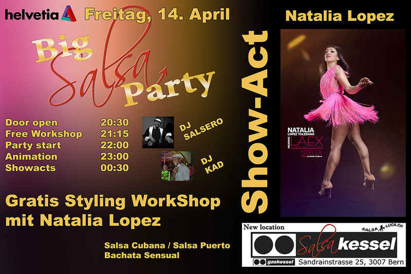 2 Floor: Salsakessel & Kizombakessel14.04.2017 Diese Party ist ein Muss für jede Tänzerin und jeden Tänzer! Melde Dich und Deine Freunde bei uns an für die Friendslist. Sende uns eine E-Mail an salsaluca@salsaluca.ch -> Main Floor: Salsa Cubana, Salsa Puerto, Bachata Sensual mit DJ KAD & DJ Salsero Gratis WorkShop mit dem Weltstar Nathalia Lopez ab 21:15 Animation Hexenkessel: Wir bringen den Salsakessel zum kochen! ShowAct: World Star Nathalia Lopez with her amasing Soloshow -> 2nd Floor: 100% Kizomba Gratis Urban Kiz Intermedio Workshop mit Jose & Andrea ab 21:00 Uhr. Party ab 22:00 Uhr mit DJ Eddie Pesado