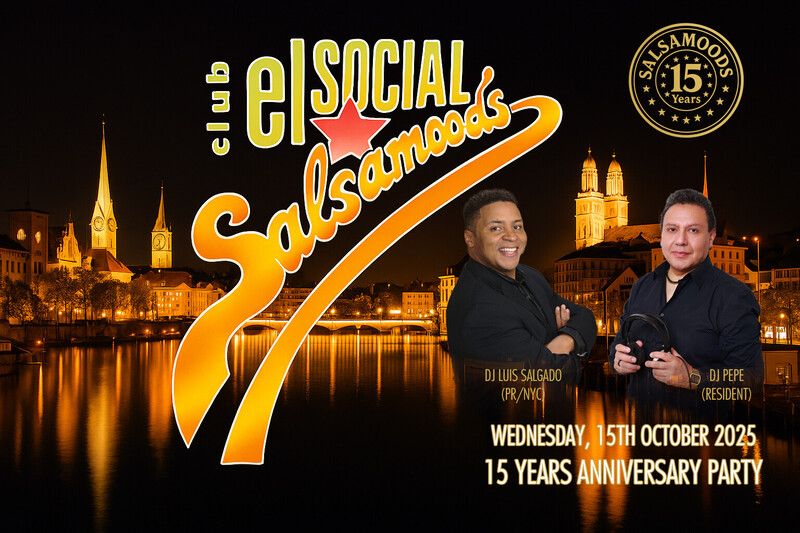 🎉 SALSAMOODS – Seit 15 Jahren DIE Salsaparty mittwochs in Zürich! 🎉 📅 Heute, Mittwoch, 15. Oktober 2025 📍 El Social, Zürich Wir feiern 15 Jahre SALSAMOODS – eine unglaubliche Reise voller Musik, Leidenschaft & unvergesslicher Momente! 💃🕺 Die Party für alle On2- & Linientänzer in der Schweiz – mit Geschichte, Herz & Community. 🎧 DJ Pepe (Resident) & Gast-DJ Luis Salgado (New York City) bringen die besten Salsatunes an die Decks – garantiert heisse Stimmung bis spät in die Nacht! 🔥 Kommt vorbei & feiert mit uns – ¡Salud y a bailar! 🍹
