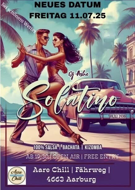 Wir laden Sie zum Tanzen und Genießen bekannter Rhythmen ein. Salsa . Bachata . Kizomba . Freiluft . Solatino @Aare Chill mit Dj Ashé Eintritt: Frei https://www.facebook.com/pavelmichell