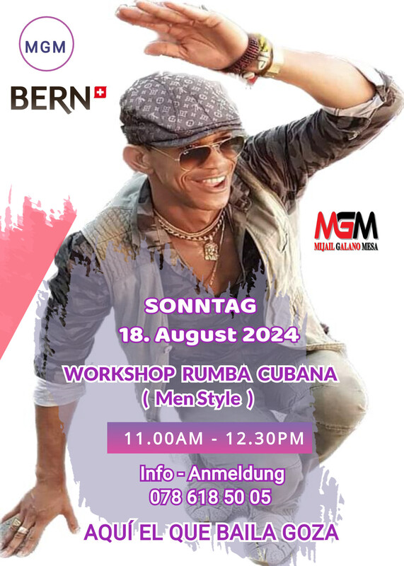 A Rumbear Rumberos Workshop Rumba Cubana mit Mijail Galano 11:00 - 12:30 Rumba Cubana Men Style Info & Anmeldung 078 618 50 05 Aquí El Que Baila Goza www.mijailgalano.ch