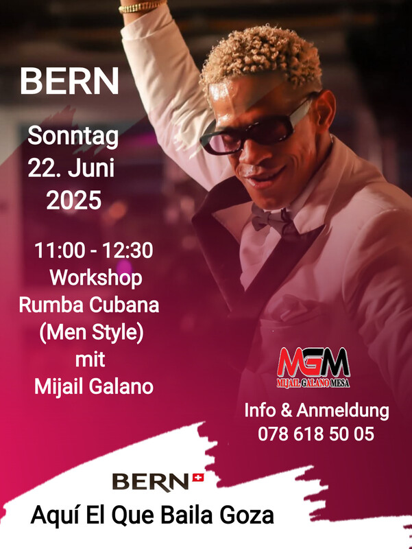 A Rumbear Rumberos Sonntag in Bern 11:00 - 12:30 Workshop Rumba Cubana (Men Style) mit Mijail Galano Info & Anmeldung 078 618 50 05 🎶 Aquí El Que Baila Goza 🎶 www.mijailgalano.ch