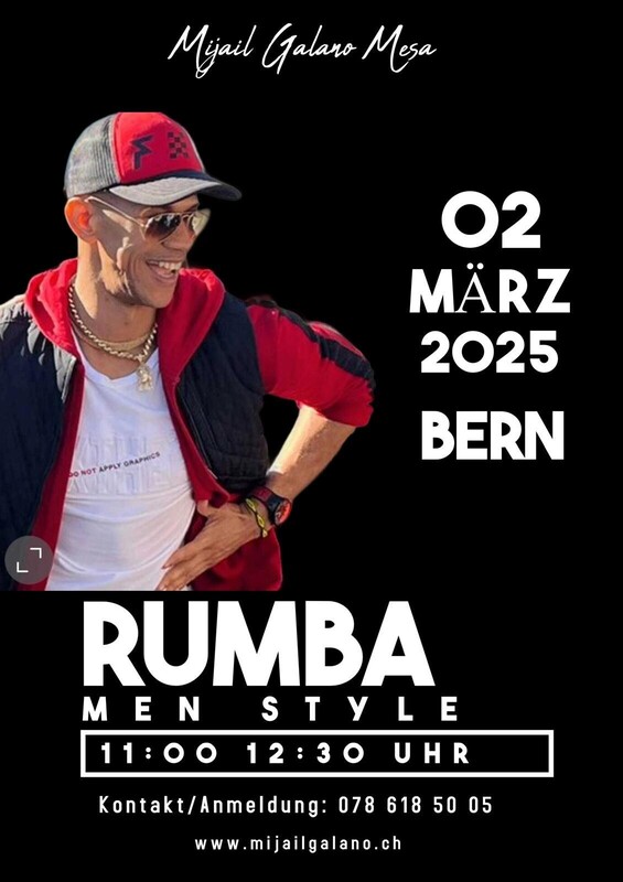 Sonntag in Bern A Rumbearrrr Rumberos Rumba Cubana mit Mijail Galano 11:00 - 12:30 Rumba Cubana Men Style Info & Anmeldung 078 618 50 05 Aquí El Que Baila Goza www.mijailgalano.ch