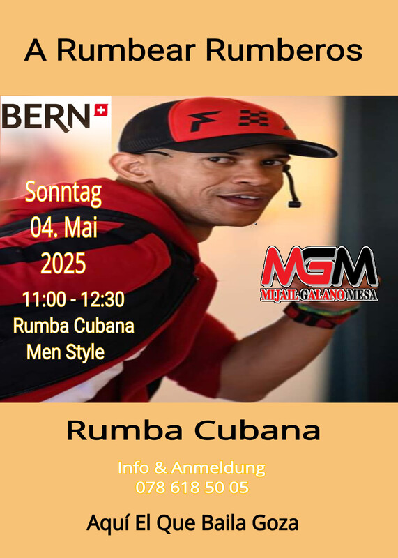 Rumba Cubana in Bern Workshop Rumba Cubana (Men Style) 11:00 - 12:30 Rumba Cubana Men Style Info & Anmeldung 078 618 50 05 www.mijailgalano.ch