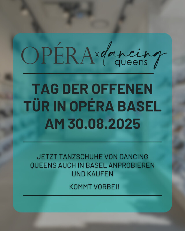 🎉 Tag der offenen Tür in Basel – Wir feiern mit euch! 📍 Wo: Opéra – Schweizer Ballet- und Tanzshop, Theaterstrasse 7, 4010 Basel 📅 Wann: Samstag, 30. August 2025 🕚 Uhrzeit: 11:00 bis 15:00 Uhr Wir laden euch herzlich ein zu einem ganz besonderen Tag: Lernt nicht nur unser Sortiment hautnah kennen, sondern feiert mit uns einen großen Schritt in unserer Entwicklung! 🤝 Neu & exklusiv: Wir freuen uns riesig, euch unsere Zusammenarbeit mit Opéra – dem Schweizer Ballett- und Tanzshop – sowie Dancing Queens vorstellen zu dürfen! Dank dieser Partnerschaft werden unsere beliebten Tanzschuhe ab sofort bei Opéra direkt im Store erhältlich sein – zum Anprobieren, Fühlen und Erleben. Ob Tänzerin, Lehrerin, Eltern oder Tanzbegeisterte – kommt vorbei, stöbert durch unser Sortiment und nutzt die Gelegenheit für persönliche Beratung! 🎈 Feiert diesen Meilenstein gemeinsam mit uns – wir freuen uns auf euch! https://www.dancingqueens.ch/pages/probieren