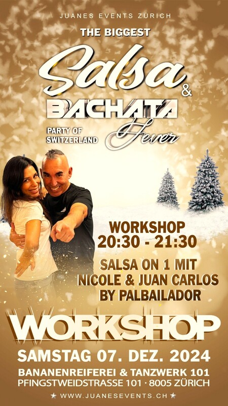 WORKSHOPS HEUTE PROGRAMM @ THE BIGGEST SALSA AND BACHATA FEVER 🎅 CHRISTMAS PARTY 🎅 IN SWITZERLAND SAMSTAG 07. DEZEMBER 2024 Bananenreiferei & Tanzwerk 101 ZĂŒrich ☃☃☃ 🎄 NUR BAR ZAHLUNG AN DER ABENDKASSE 🎄 EN LA CAJA SE PAGA SOLO EN EFECTIVO ☃☃☃ PROGRAMM AB 20:30 UHR START MIT WORKSHOPS ●●● WORKSHOPS AB 20:00 UHR (BANANENREIFEREI) START: 20:30 - 21:30 UHR SALSA ON 1 MIT NICOLE & JUAN CARLOS BY PALBAILADOR LAVEL: AB MITELSTUFE SALSA EN LINIA PUERTORRIQUEÑA ☃☃☃ * 20:30 - 21:30 UHR GT BACHATA BASEL (TANZWERK) STYLE: BACHATA FLOW LABEL: INTERMEDIATE Sie brauchen nicht zu buchen, kommen Sie direkt zum Bananenreiferei am Samstag 07. DEZEMBER um 20:00 Uhr. Der Workshop Preis ist CHF 30.- Inkl. Garderobe & Party auf 5 Dance Floors. ☃☃☃ http://juanesevents.ch/