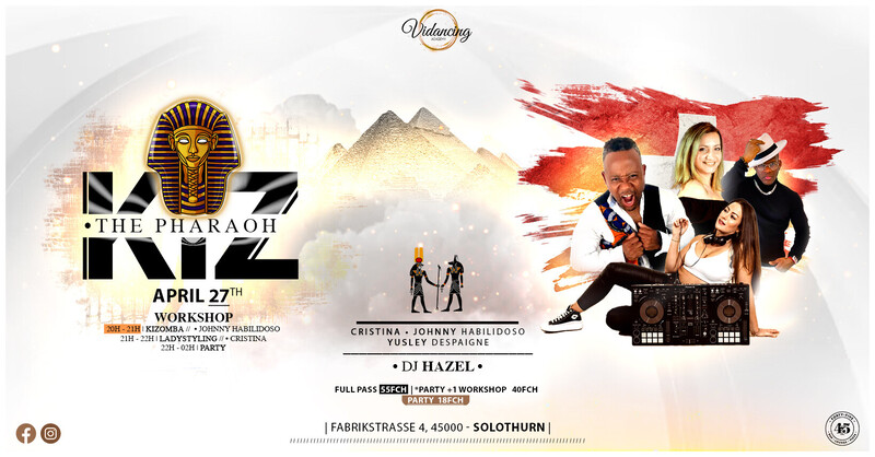 ✨️Die Info: ✨️Datum: 27. April 2024 ✨️Öffnungszeiten: 19:30 Uhr ✨️Adresse: Bar 45 / Fabrikstrasse 4 4500 Solothurn ✨️Workshop 20 Uhr Johnny Agostino: Kizomba 21 Uhr Cristina: Leadystyling ✨️DJ: Hezel Kizomba ✨️Music: 🔹️kizomba 🔹️Zouk 🔹️Tarraxo 🔹️Urbankiz 🔹️kompas 🔹️Zemba ✨️Preis: Party +1 Workshop _ 40FCH Voller Pass _ 55FCH Party_18FCH