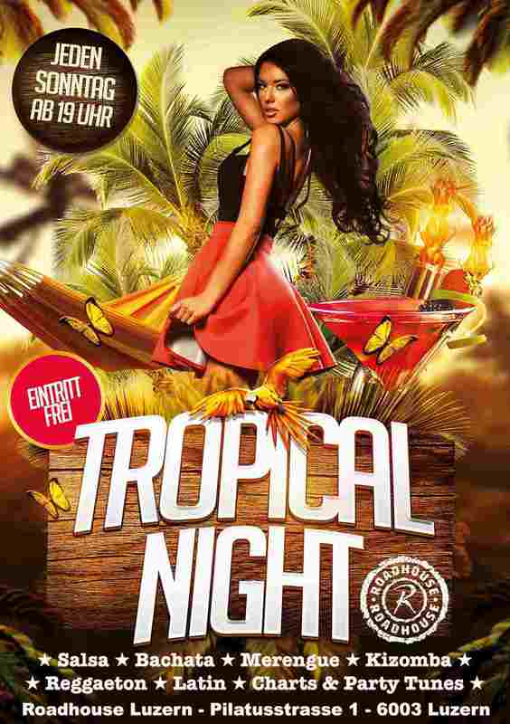 Jeden Sonntag TROPICAL NIGHT Ab 19:00h. & Frei Eintritt DJ Theo Salsa All Styles - Bachata - Kizomba - Merengue - Latin ROADHOUSE Pilatusstrase 1, 6003 Luzern