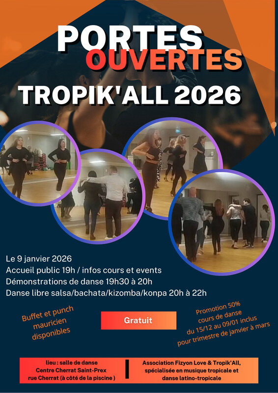 19h accueil 19h30 démonstration 20h à 22h pratique libre salsa bachata kizomba konpa https://linktr.ee/tropikall.dance