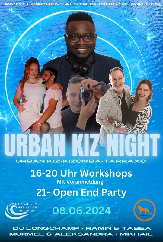 Lasst uns abtanzen bei unserer ersten Urban Kizomba Party und das Leben feiern am Samstag den 8. Juni im Pivot in St.Gallen!! 16.00 - 20.00 Uhr Workshops mit Murmel & Aleksandra / Ramin und Tabea, wichtig mit Voranmeldung !!! Ab 21.00 Uhr Party mit DJ Longchamp Urban Kiz / Kizomba / Tarraxo Nur Party CHF. 25.-- Infos Phone 078 209 93 31 oder per Mail an info@ce-events.ch Tickets: https://eventfrog.ch/de/event/7195041539441021682/preview.html C & E Events GmbH und in Kooperation Urban Kiz Festival am Bodensee Wir freuen uns auf einen schönen Abend mit euch !!! www.ce-events.ch