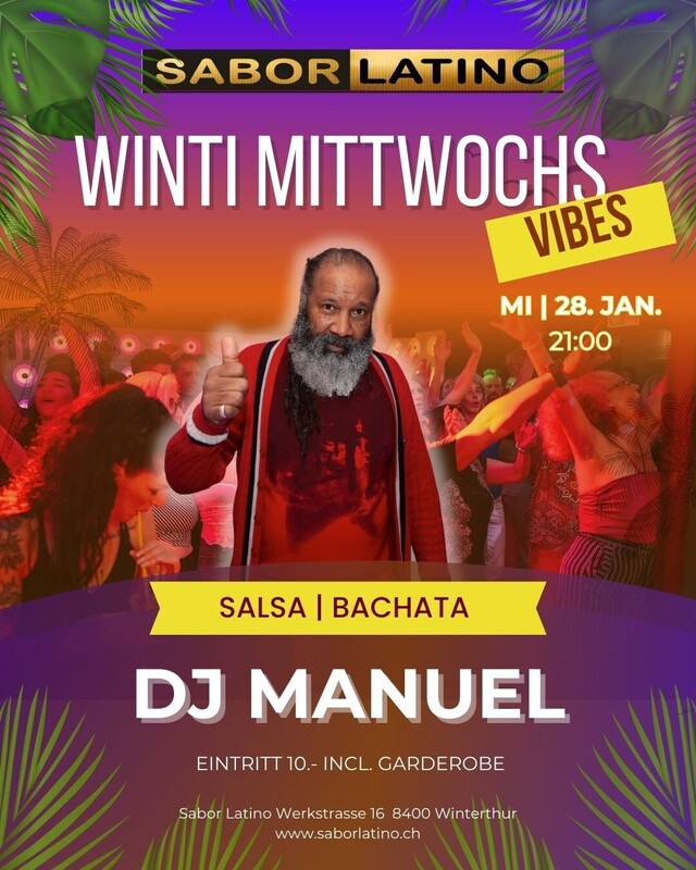 Salsa & Bachata im Sabor Latino Die Wochenmitte gehört dem Tanz 💃🕺 Winti Mittwoch Vibes ist die regelmässige Salsa- & Bachata-Party im Sabor Latino und findet jeden 2. und jeden 4. Mittwoch im Monat statt. Freu dich auf entspannte Latin-Vibes, eine volle Tanzfläche und wechselnde DJs, die dich mit feinster Salsa und Bachata sicher durch den Abend tragen. Ob nach der Arbeit abschalten, mit Freund:innen tanzen oder neue Leute kennenlernen – Winti Mittwoch Vibes ist der perfekte Treffpunkt für die Winterthurer Tanzszene. Was dich erwartet: 🎶 Salsa & Bachata mit wechselnden DJs 💃🕺 offene, herzliche Tanzcommunity 🍹 Bar, Garderobe & angenehme Atmosphäre 🕘 Start jeweils ab 21:00 Uhr Egal ob Anfänger:in oder erfahrene:r Tänzer:in – bei Winti Mittwoch Vibes geht es um Musik, Bewegung und gute Energie. Komm vorbei und bring deine Wochenmitte zum Tanzen. https://saborlatino.ch/events/winti-mittwochs-vibes-3/