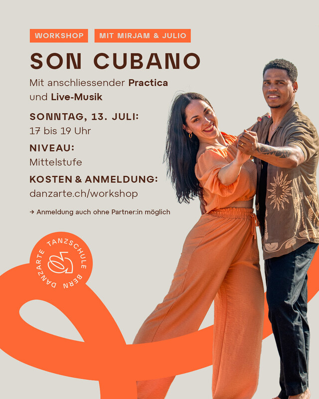 mit Julio & Mirjam 17:00-19:00 Uhr Mittelstufe Anmeldung auch ohne Partner:in möglich Dieser Workshop ist ideal für dich, wenn du Lust hast, dein Können im Son Cubano intensiv zu erweitern und in der anschliessenden Práctica zu vertiefen. Wir freuen uns auf dich, Dein Danzarte Team. https://danzarte.ch/workshop/
